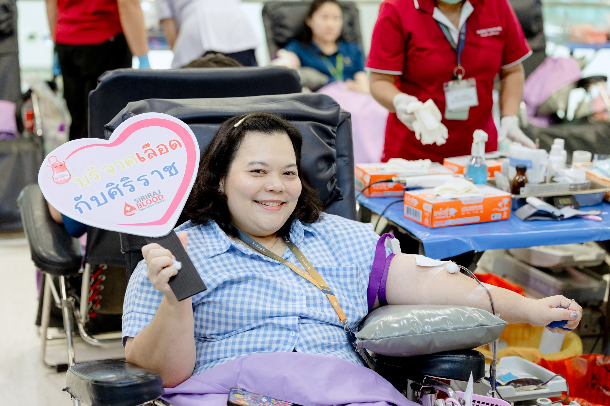 ภาพบรรยากาศกิจกรรมบริจาคเลือด ทุกการบริจาคจะถูกส่งต่อเพื่อช่วยเหลือผู้ที่ขาดแคลนเลือดโรงพยาบาลศิริราช กิจกรรมจัดขึ้นเมื่อวันพฤหัสบดีที่ 7 สิงหาคม 2568 09:00-14:00 น. ณ บริเวณชั้น 3 โซน A ตรงข้ามศูนย์หู คอ จมูก