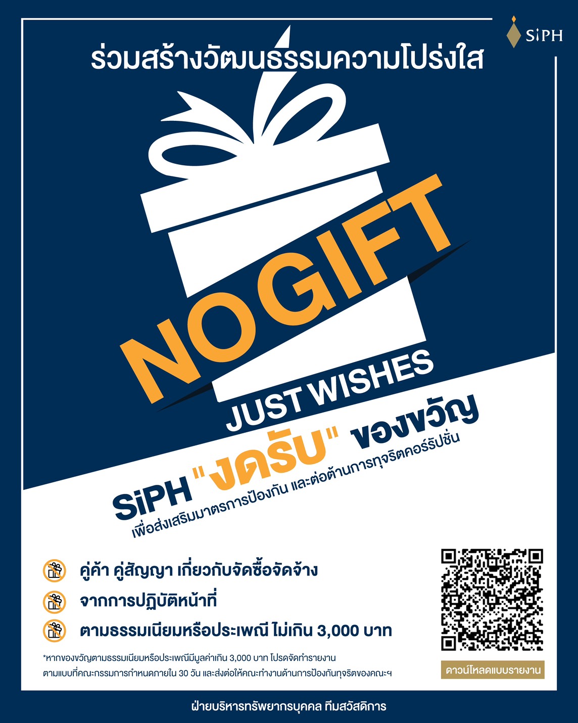 SiPH งดรับของขวัญเพื่อส่งเสริมมาตราการป้องกัน และต่อต้านการทุจริตคอร์รัปชั่น